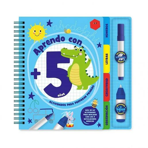Aprendo con – 5 años también incluye dos rotuladores, lo que añade un toque interactivo y emocionante para que los niños puedan involucrarse aún más en su aprendizaje. Podrán utilizar un rotulador borrable y otro mágico de agua, lo que les permitirá explorar y aprender de una forma única y estimulante.