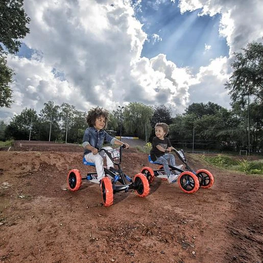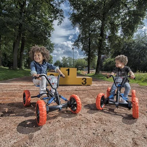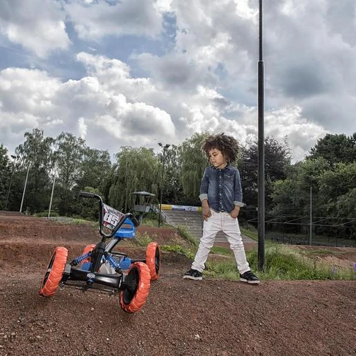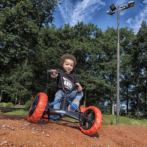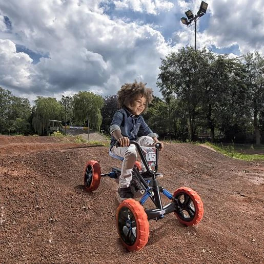 Triciclo todoterreno 4 ruedas Buzzy Nitro, con una conducción muy estable gracias a las 4 ruedas. Sus ruedas son de Eva y tienen un perfil de agarre de para pistas de tierra, pero a la vez, ofrece una conducción ligera y silenciosa.