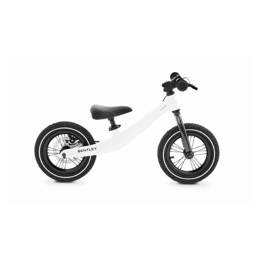 Bicicleta de equilibrio Bentley Blanca. Una balance bike, o bici de equilibrio espectacuar, diseñada en colaboración con Bentley Motors LTD. Estas bicicletas tienen unos detalles increíbles y muy especiales.