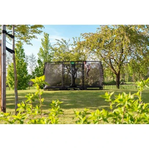 Exit – Cama elástica de suelo Allure Classic 214 x 366 cm verde, un trampolín para ser semienterrado con borde protector acolchado y red de seguridad.