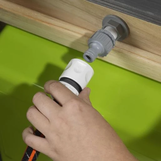 Una verdadera experiencia culinaria. Exit Yummy 100 les permite experimentar una cocina real. La cocina al aire libre tiene una estufa con perillas giratorias y un grifo real. El grifo funciona conectando la manguera de su jardín y, debido a un fregadero extraíble, el agua se puede verter fácilmente. ¡Al igual que en una cocina real, puedes lavarte las manos, llenar vasos y lavar los platos! Además, Exit Yummy 100 tiene mucho espacio de almacenamiento para sartenes y otros accesorios de cocina y puedes colgar los utensilios restantes en los pequeños ganchos. ¡Las cocinas al aire libre Exit Yummy ofrecen la experiencia culinaria perfecta!