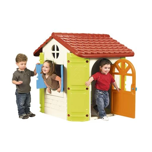 Feber – Feber House, una casita con ventanas que abren y cierran, puerta con llave, estantería y barbacoa.