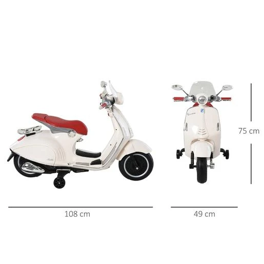 Homcom – Vespa blanca Vehículo de batería. Los más peques podrán imaginar interminables aventuras subidos a su vespa infantil.