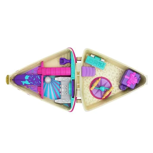 – Los secretos adicionales incluyen un regalo para Polly que se abre y se convierte en un anillo que los niños pueden ponerse; y a Polly saliendo del accesorio en forma de tarta, que se abre y se cierra.