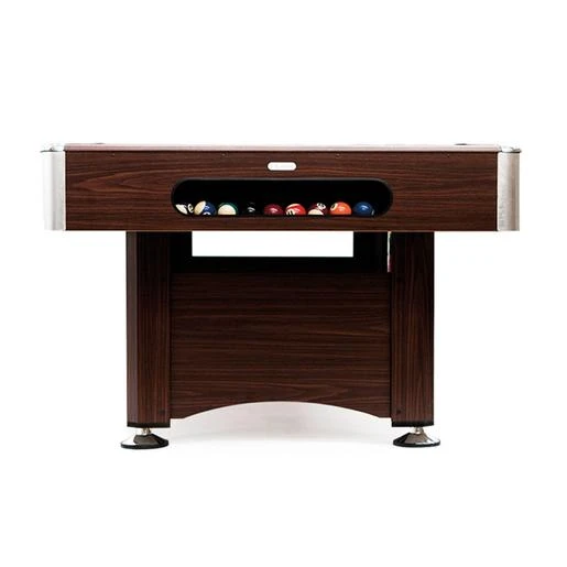 La mesa viene montada a falta de atornillar las patas. Incorpora una barra superior ancha y defensas de goma para conseguir un auténtico rebote de la bola. La mesa de billar está forrada con tejido de gran duración. Incorpora niveladores de patas.