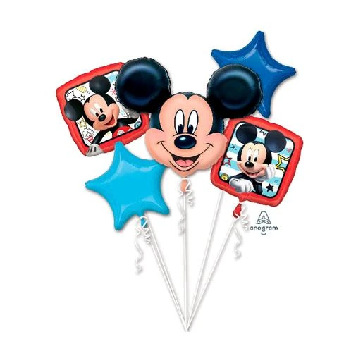Mickey Mouse – Pack 5 Globos Bouquet , un pack de 5 globos decorados con la imagen de Mickey Mouse.
