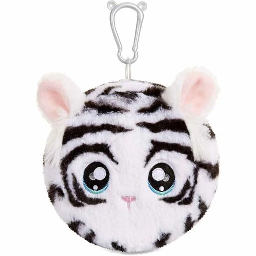 Abre la cremallera del monedero pompón para sacar a la preciosa y suave muñeca de moda con detalles impresos únicos y un cabello superbonito.