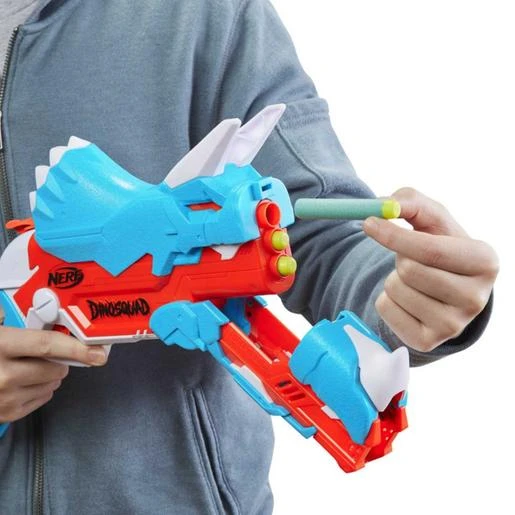 Nerf – Dinosquad Tricera-blast, un bláster con detalles increíbles inspirado en un triceratops.