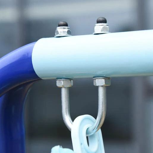 Columpio para uso exterior para niños a partir de 3 años. El asiento ergonómico en forma de U ofrece un sentado cómodo y natural. Con tratamiento UV para proteger el color y aumentar su duración, no tóxico, especialmente diseñado para su uso con niños. Con estructura metálica lacada en pintura con recubrimiento en polvo, este columpio con marco en forma de A ofrece gran estabilidad y resistencia a la intemperie y a la corrosión. Incluye 4 extensiones en las patas que funcionan a modo de piquetas para enterrar en el suelo.