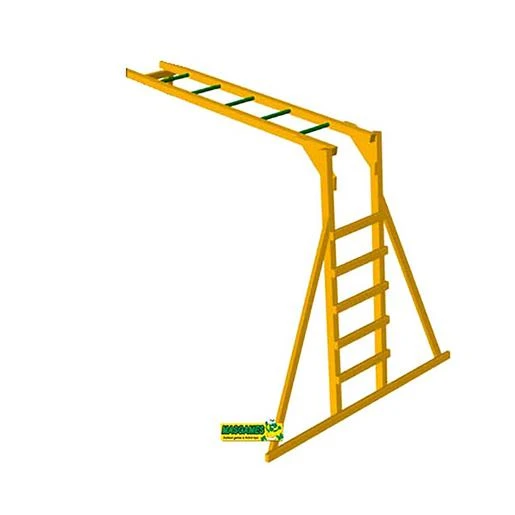 Parque juegos infantil de madera Teide XL con puente y columpio doble. El parque infantil Teide XL con punete y columpio doble está compuesto de una casita de madera elevada, a la que se puede acceder por las escaleras o escalando por la pared del lateral. Para bajar de la torre de la casita infantil se utiliza la rampa del tobogán.