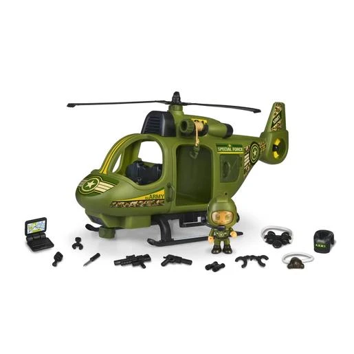 Conduce junto con las figuras militares de Pinypon Action y vuela por las alturas con este helicóptero militar.