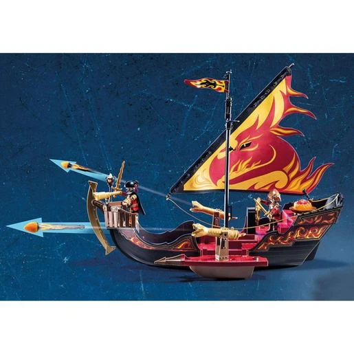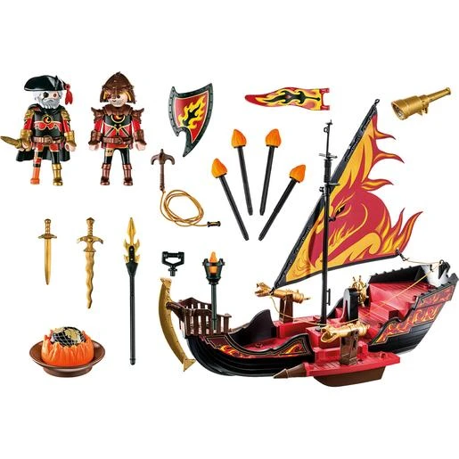 El juego incluye al líder de los bandidos de Burnham, Bayron Burnham, y a Archibald Blazebow. Un barco de fuego con cañones que funcionan, velas de dragón y una brújula mágica. La hoz de la proa del barco puede usarse como protección contra el ariete o como gancho de agarre. Al barco se le puede añadir el motor submarino (no incluído).