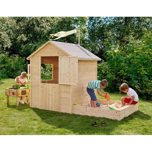 Se trata de una casita con un arenero acoplado a un lateral (no incluye la arena para el arenero). La puerta es de doble apertura (superior e inferior) y tiene una ventana abatible. Tienen cientos de posibilidades de juego y opciones para crear mundos nuevos al aire libre. Son ideales para una casa con jardín, y para peques de 3 a 12 años.