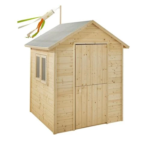 Esta casita tiene el tejado con fieltro asfáltico para mayor impermeabilidad. Su interior ofrece un espacio de juegos de 1,35 m2.