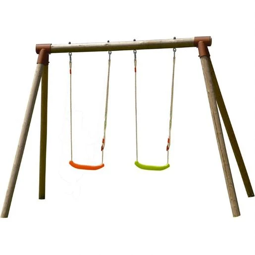 Se trata de un columpio de madera tratada con autoclave IV marrón. Es ideal para una casa con jardín, y para peques de 3 a 12 años.