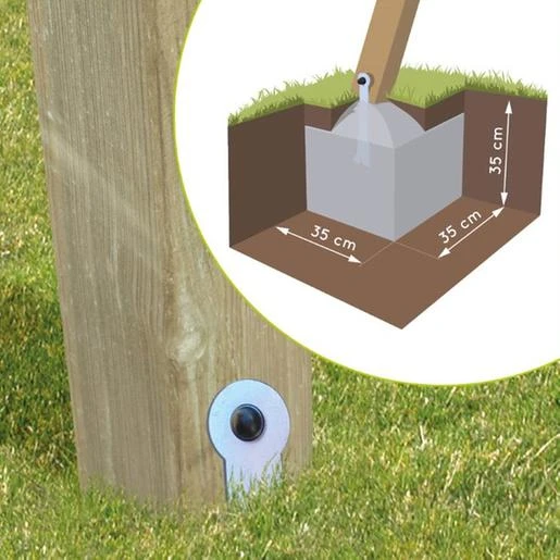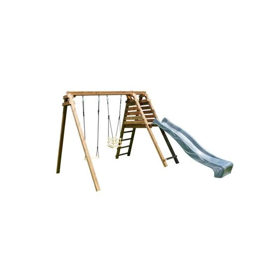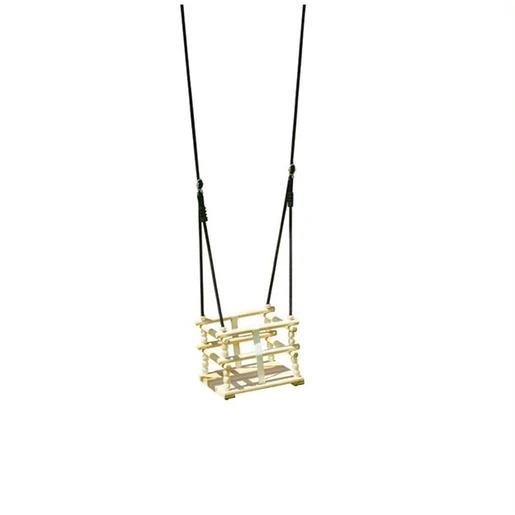 Se trata de un columpio de madera tratada con autoclave IV marrón. Es ideal para una casa con jardín, y para peques de 3 a 12 años.