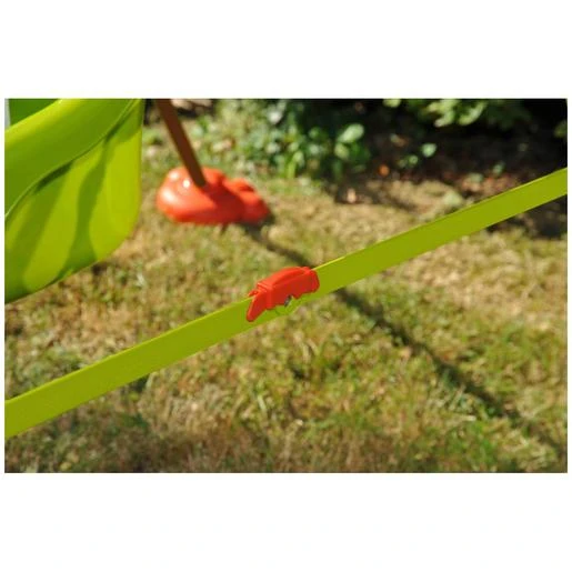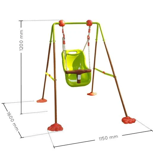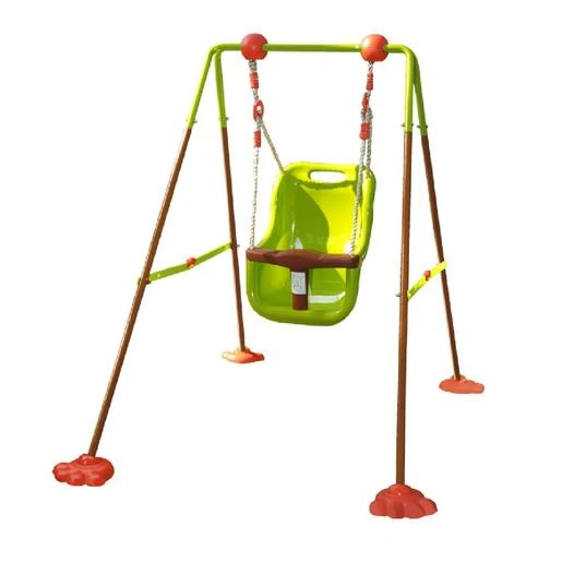 Este columpio con postes de metal redondos hará que el niño hijo descubra las primeras sensaciones del balanceo.