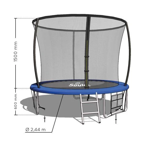 Soulet – Trampolín 244 cm con escalera, un trampolín con escalera para facilitar el acceso y una red de protección para aumentar la seguridad para los niños y la tranquilidad para los padres.