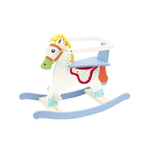 Incluye una barra antivuelco y dos asas para tener estabilidad. Este caballito balancín está hecho madera eco-responsable, garantiza así el uso racional y sostenible de los bosques.
