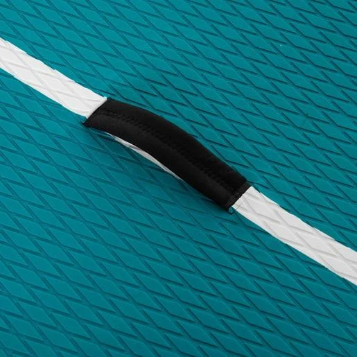 La superficie está fabricada con goma EVA antideslizante para aumentar la adherencia. Incluye una hebilla en forma de D con una correa para el tobillo para mayor seguridad, y viene con un compartimento de cuerda elástica de 3 m para mantener a salvo tus enseres personales.