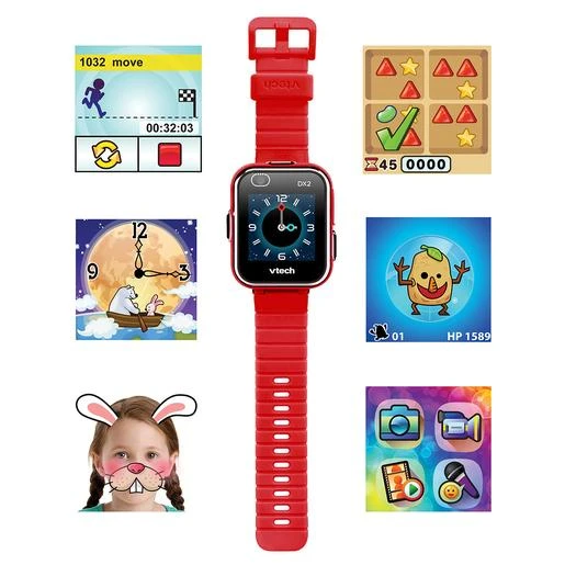 Vtech – Kidizoom Smartwatch DX2 Rojo, un reloj de color rojo, multifunción con doble cámara, ideal para hacer selfies.