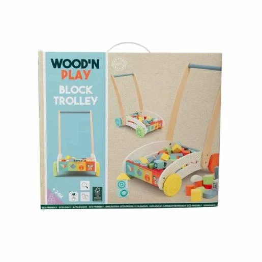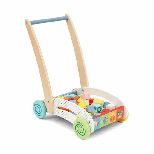 Wood’ N Play – Carrito con bloques de madera, un carrito andador ideal para estimular los primeros pasos del bebé.